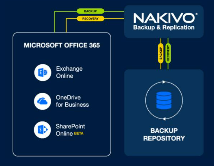 Решение NAKIVO Backup & Replication обеспечивает локальное инкрементное резервное копирование данных Microsoft 365 для Exchange Online, OneDrive для бизнеса и SharePoint Online, что позволяет эффективно интегрировать меры безопасности данных в повседневные рабочие операции. С помощью резервного копирования для Microsoft Office 365 вы можете восстанавливать папки, файлы, сайты, почтовые ящики, контакты, элементы календаря и отдельные электронные письма всего несколькими щелчками мыши.